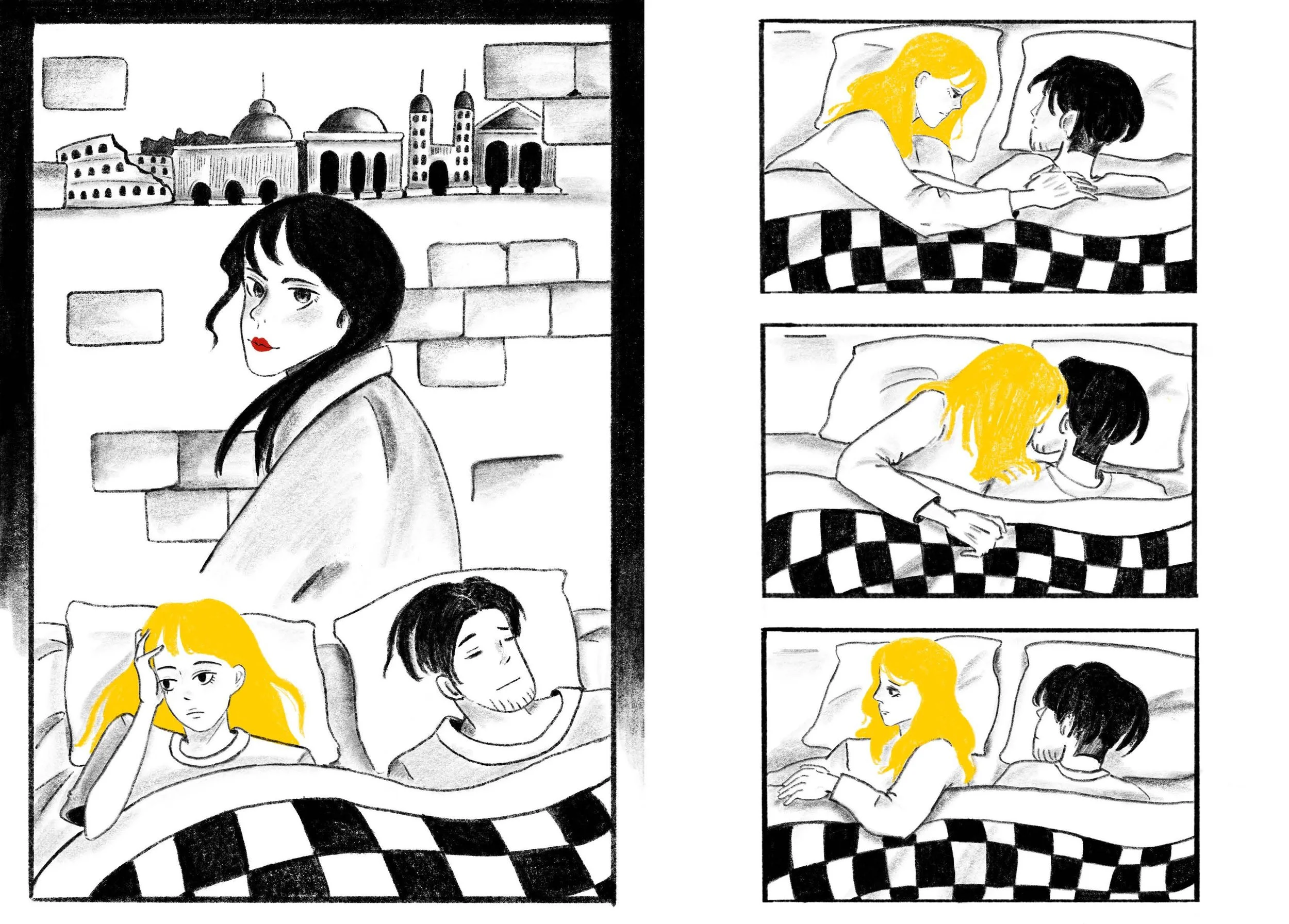 Wordless narrative comic book based on Deborah Levy’s story “ROMA”